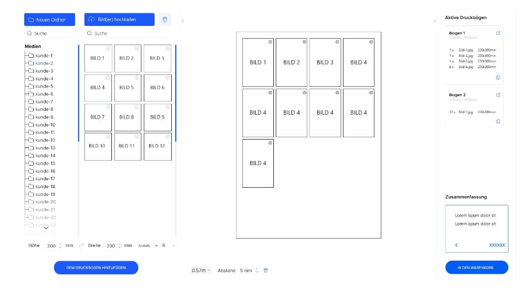 – Freiformate, Smartbuilder oder Druckbogen-Upload.